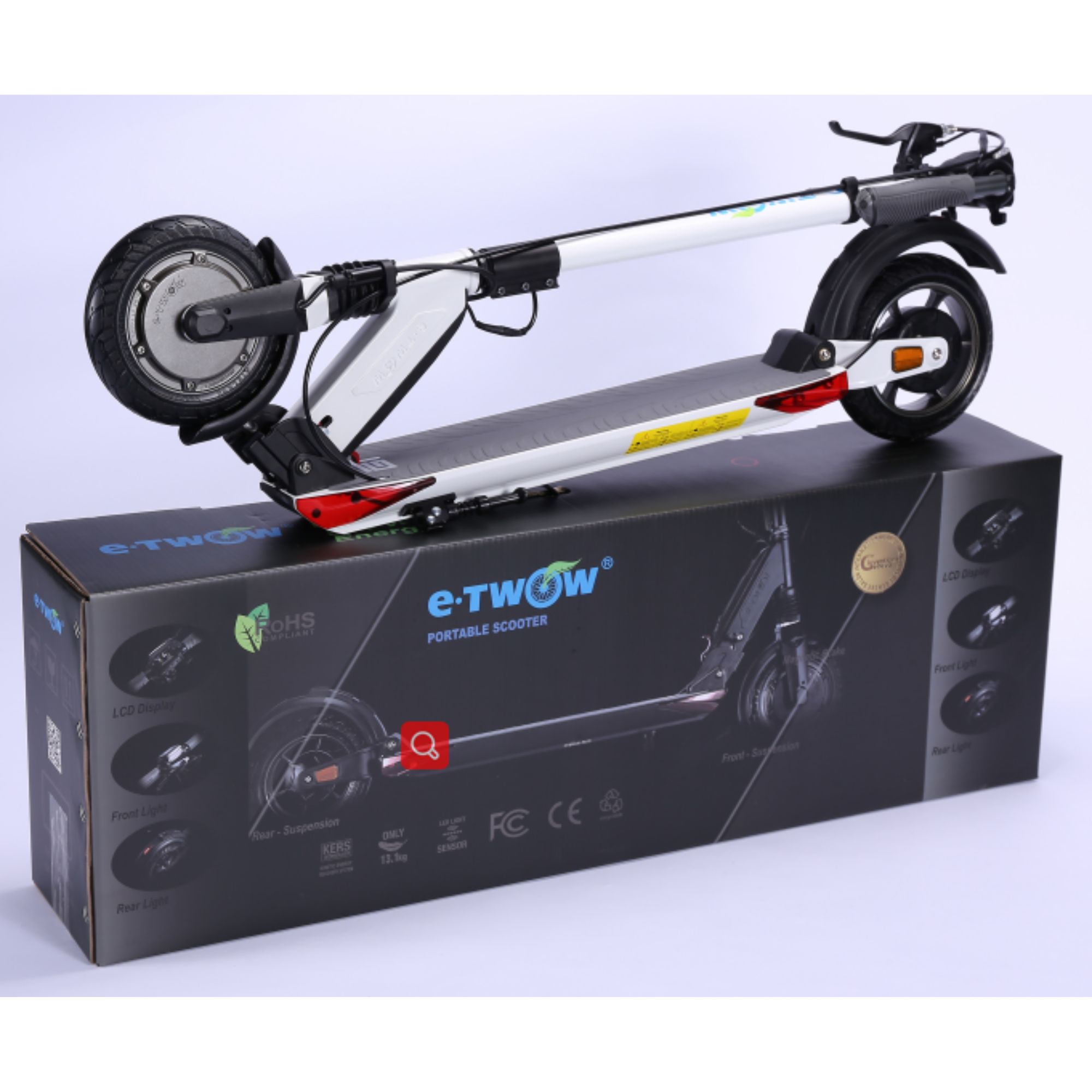 The scooter comes equipped with front and rear shock absorbers, to make riding on the city streets as comfortable as possible. Of course, you can avoid potholes and rough roads to maximize the lifetime of your scooter, but you have to know that the E-TWOW scooters can handle adverse driving conditions